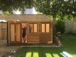 Garden Retreat specialise in providing buildings that not only satisfies the clients requirements but also planning requirements. Our standard building has uPVC windows and doors and a particular style of metal roof.  In this instance we modified one of our Contemporary Garden Offices and installed timber double glazed windows and doors and a sinusoidal profiled roof (I know, a posh word for corrugated iron from the planners) and satisfied both the client and local planners.