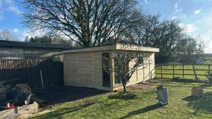 Garden Office Fordingbridge. Mr & Mrs R were looking to move their office out of the home to create additional space. They contacted Garden Retreat to provide a solution. We provided them with a ground screw base, 6″ x 2″ insulated floor and built this great garden office which solved their problem and enabled them to repurpose the space in their home.